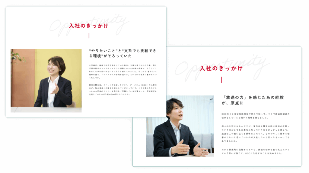 特に「社員のリアルな声をもとにした構成が信頼できる」との評価をいただき、新卒・中途問わず、採用活動で長期的に活用できるコンテンツとなりました。