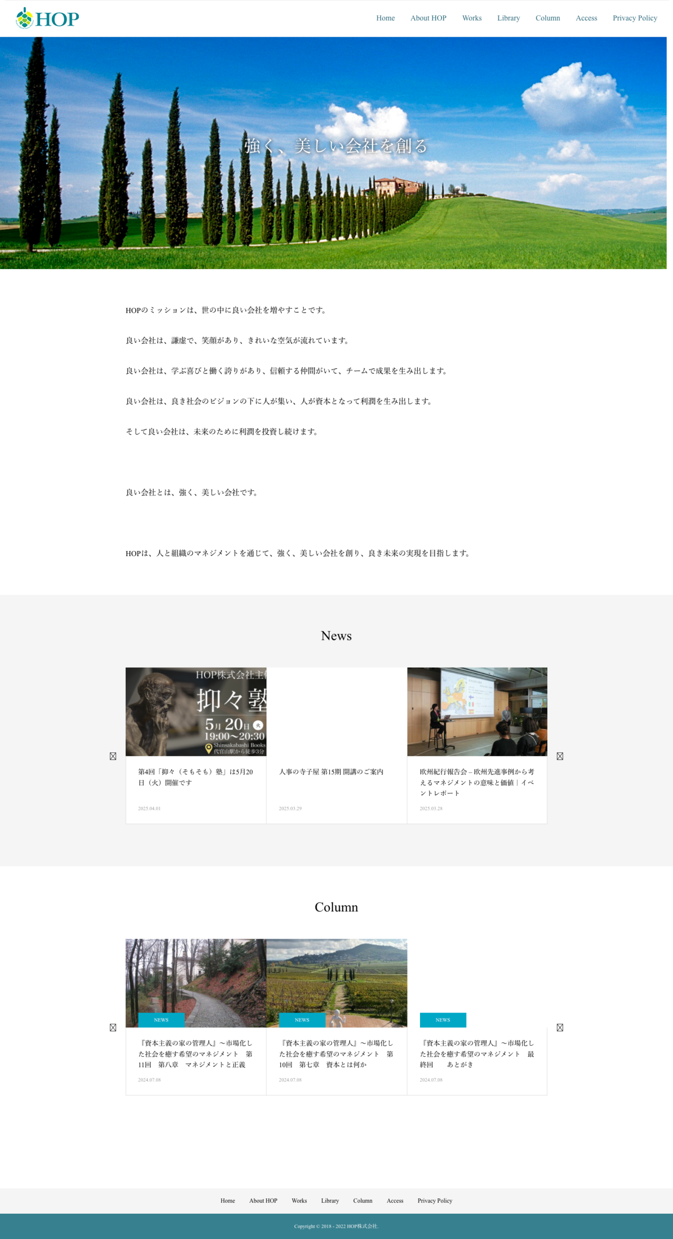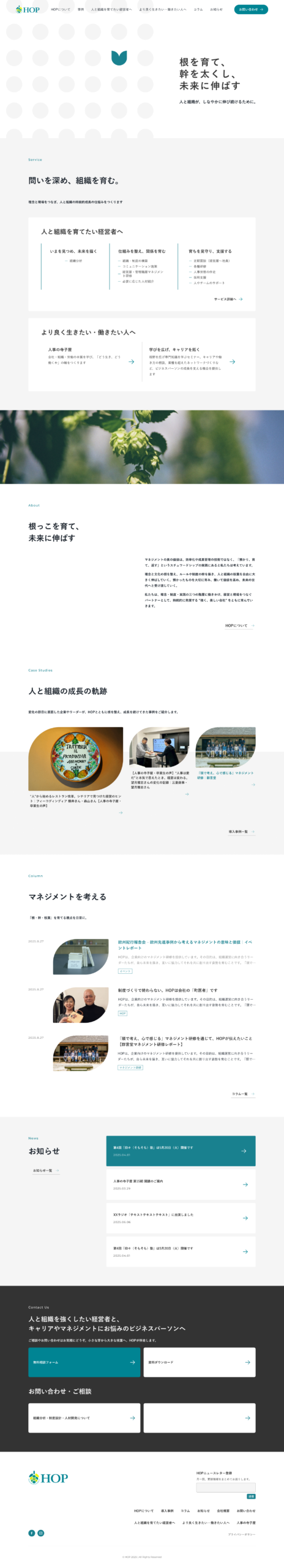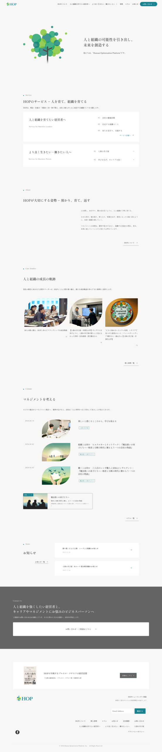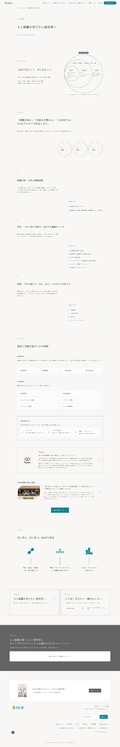 初めてホームページを見た人にも、HOPが他社とどう違うのか、どのような「組織の基盤づくり」のサービスを提供しているのか、その独自性や価値を訴求できる発信が必要とされていました。