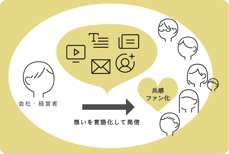 経営者や会社の理念や活動を正しく伝え、価値観に共感する人や取引先が集まる土台を築きます。