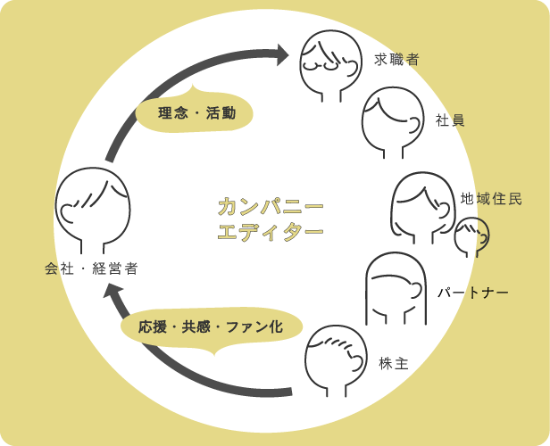 株主、社員、地域住民、ビジネスパートナー、求職者などに、会社を応援し、支えてもらうためのコミュニケーションを実行していきます。