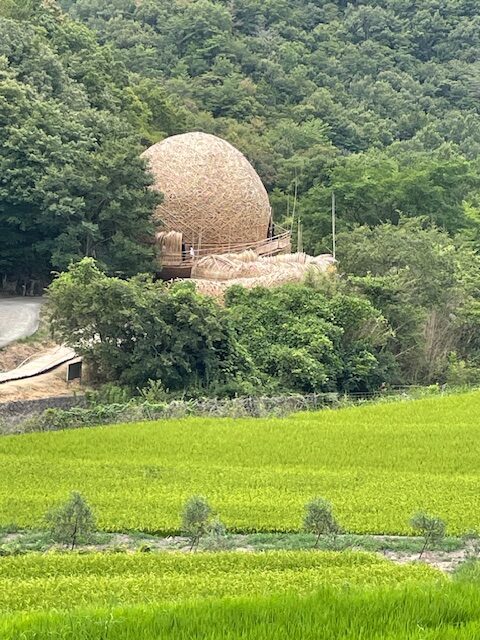 《抱擁・小豆島》(ワン・ウェンチー)は、作家が再び島を訪れた際に「小豆島が自分を抱きしめてくれた」と感じた思いを作品に込めたもの。中に入ると、不思議と心が落ち着き、島の自然や人々の温もりが身体に溶け込んでいくようだった。アートを通して「場所が人を迎え入れる」体験ができたことは、旅の中でも忘れられない瞬間である。タイトルを知った後改めて見ると、曲線の構造や包み込む空間がまさに「抱擁」の形に感じられ、作品そのものが島の優しさを具現化しているようで、心の奥が静かに温まった。