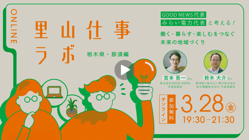 GOOD NEWS 宮本社長と那須野が原みらい電力鈴木社長をゲストに迎え、地域資源を活かした次世代に向けた未来の地域づくりと働き方について伺います。